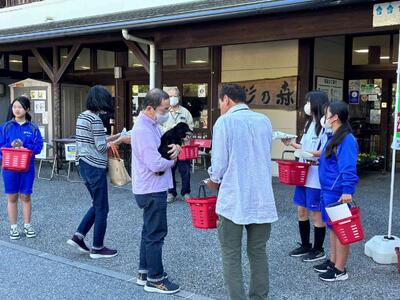 10月4日(土)、11日(土)、26日(日)には伊吹赤十字奉仕団の方、民生委員さん、更生保護女性会の方などとフレンドマート山東や旬彩の森で赤い羽根の共同募金運動を行いました。